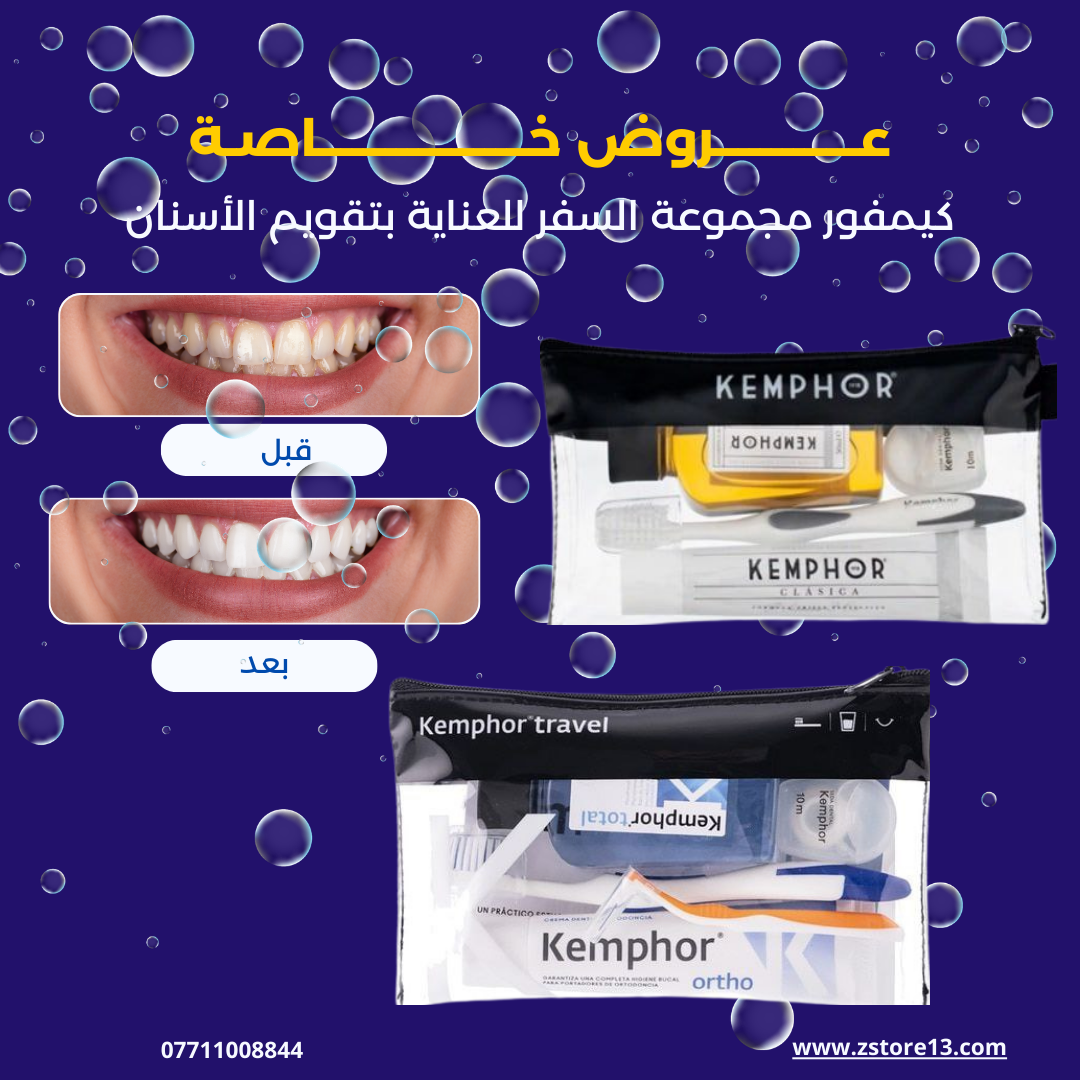 استمتع بعناية متكاملة لتقويم الأسنان مع مجموعة كيمفور المخصصة للسفر. تحتوي هذه المجموعة على كل ما تحتاجه للحفاظ على صحة الفم والأسنان أثناء التنقل.